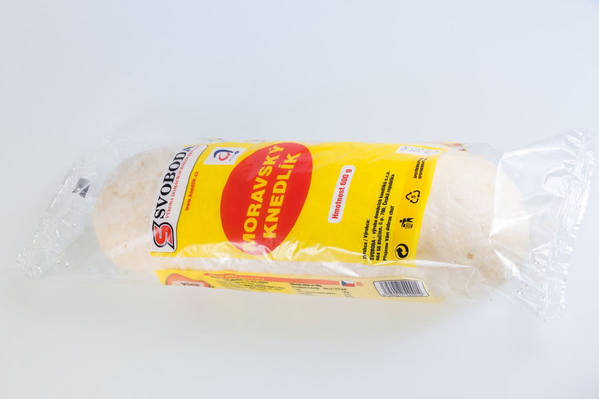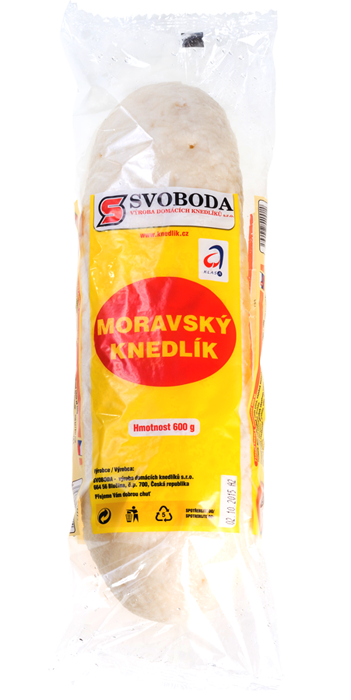 Moravský knedlík je název pro tradiční kynutý knedlík. Jídlo oblíbené už našimi babičkami a jejich babičkami. Symbol poctivé české kuchyně. Kyprý, na řezu sněhobílý, vynikající nejen ke všem druhům mas a omáček, ale i k zelí, špenátu a kapustě. Dopřejte si i vy tuto tradiční pochoutku bez námahy a bez dlouhých chvil strávených v kuchyni při jeho přípravě. Již téměř dvě desetiletí vyrábíme jeden z nejlepších kynutých knedlíku v Čechách a na Moravě a to pod názvem Moravský knedlík, oceněný známkou kvality KlasA. Ochutnejte i vy jeho nezaměnitelnou chuť. Dodáváme jej ve variantách 600 a 400 gramů. Můžete jej mít i krájený (tloušťka kolečka 14 milimetrů).